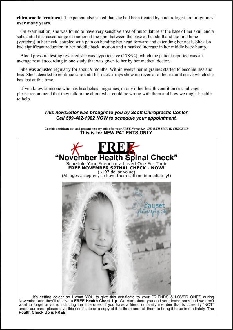 Scott P. Maystrovich D.C. is a chiropractor serving Spokane and the surrounding area. Our chiropractor and the rest of the welcoming team at Scott Chiropractic Center are committed to providing chiropractic solutions to address your unique needs, whether you are experiencing back pain, neck pain, headaches, or even muscular tightness and tension. You may be searching for pain relief after an accident, experiencing an injury, or if you suffer from a specific condition like chronic back pain or a spinal condition. Even if you looking to improve your overall health, our chiropractor can help you attain your everyday wellness goals! Visit our testimonials page to find out what our patients are saying about our Spokane chiropractor and our chiropractic care plans.